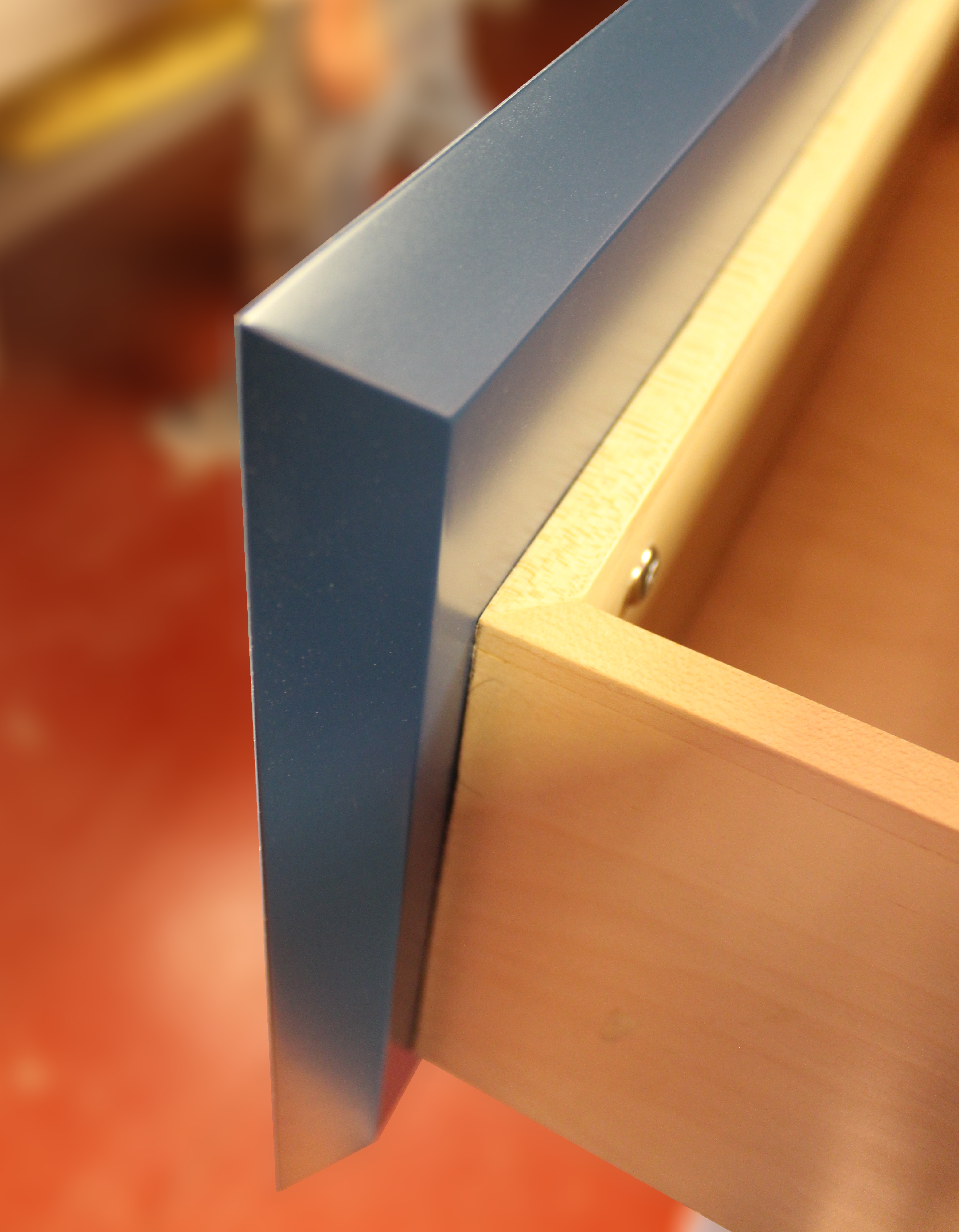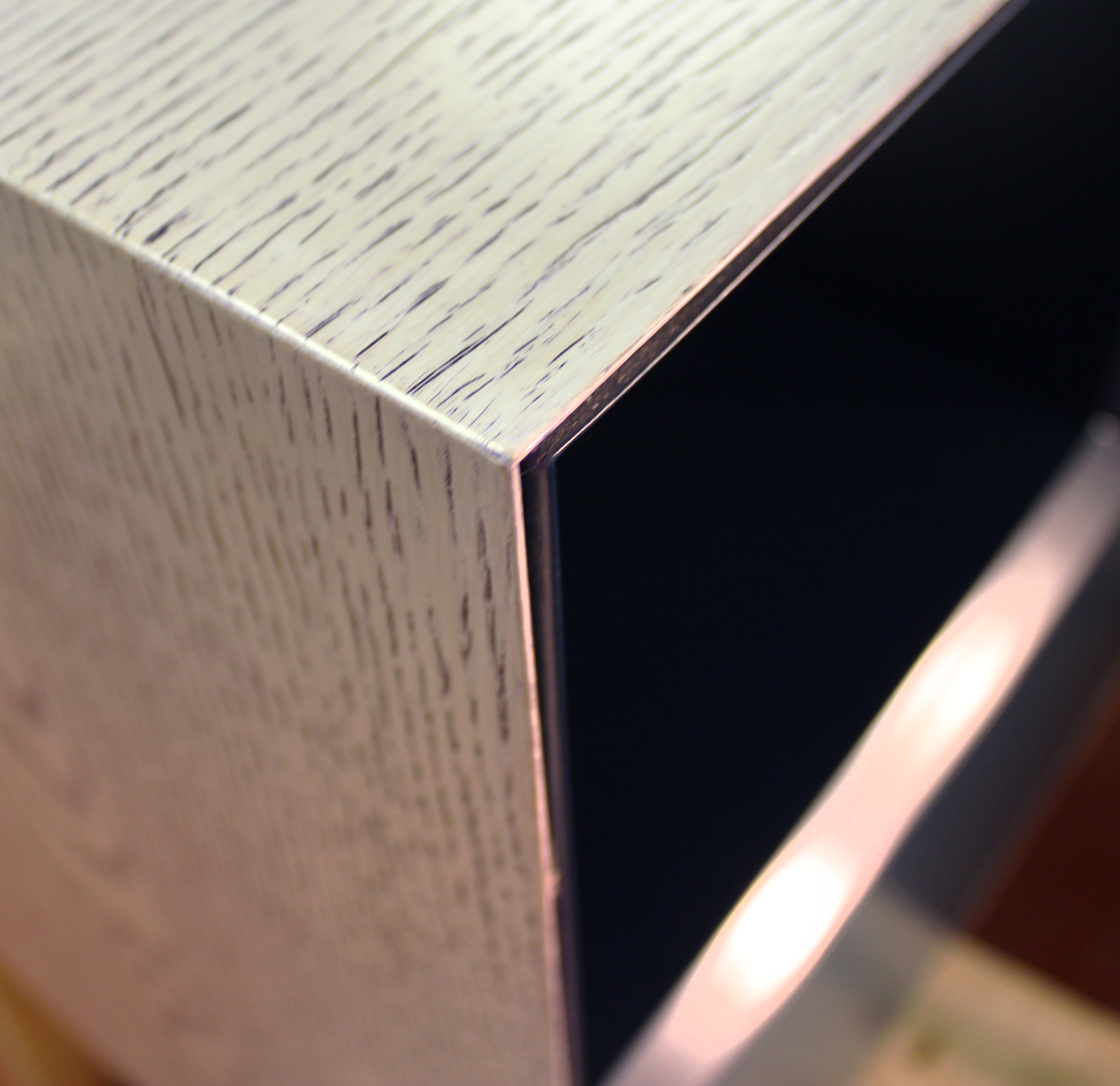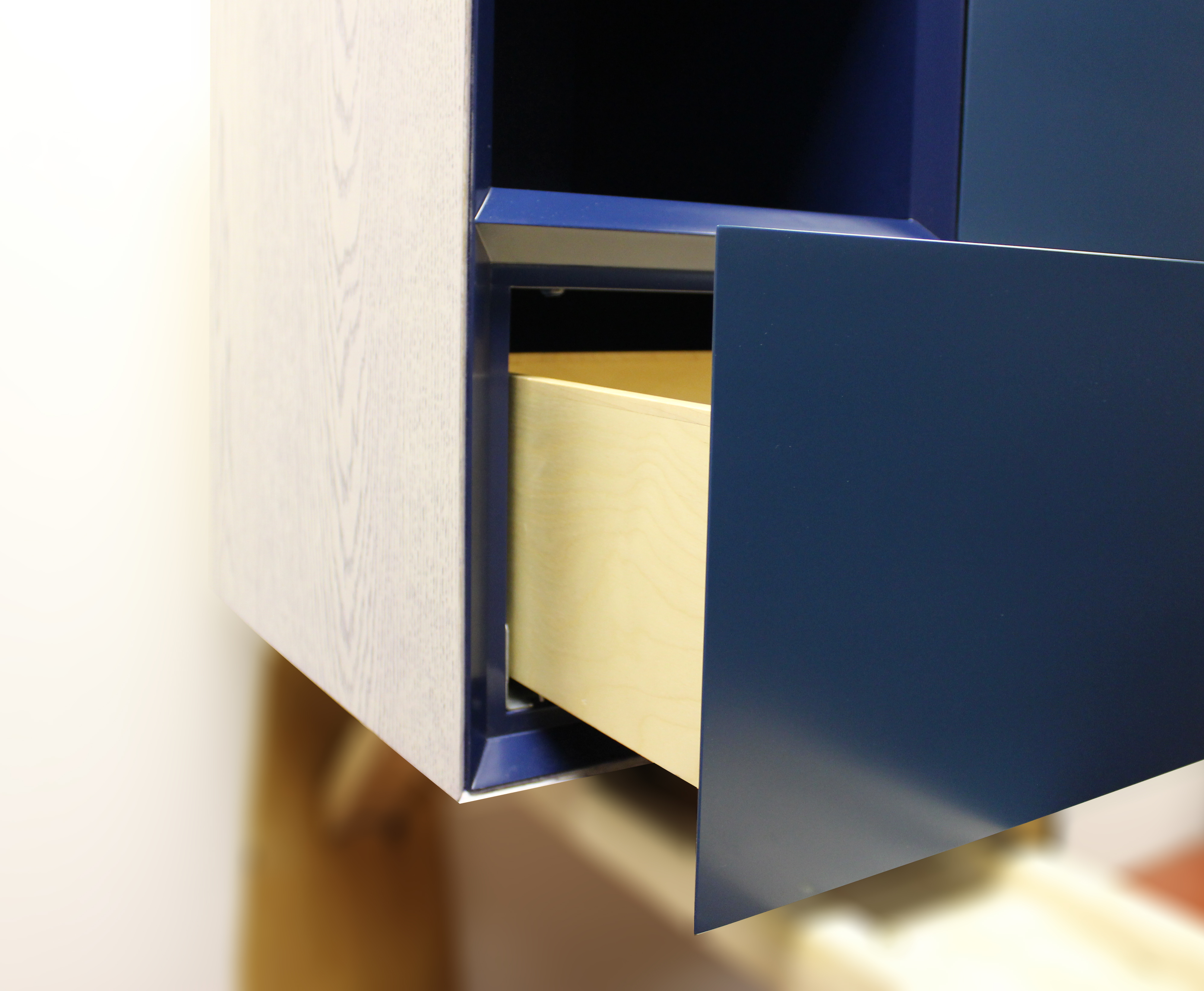White cerused oak | Dark blue lacquer.